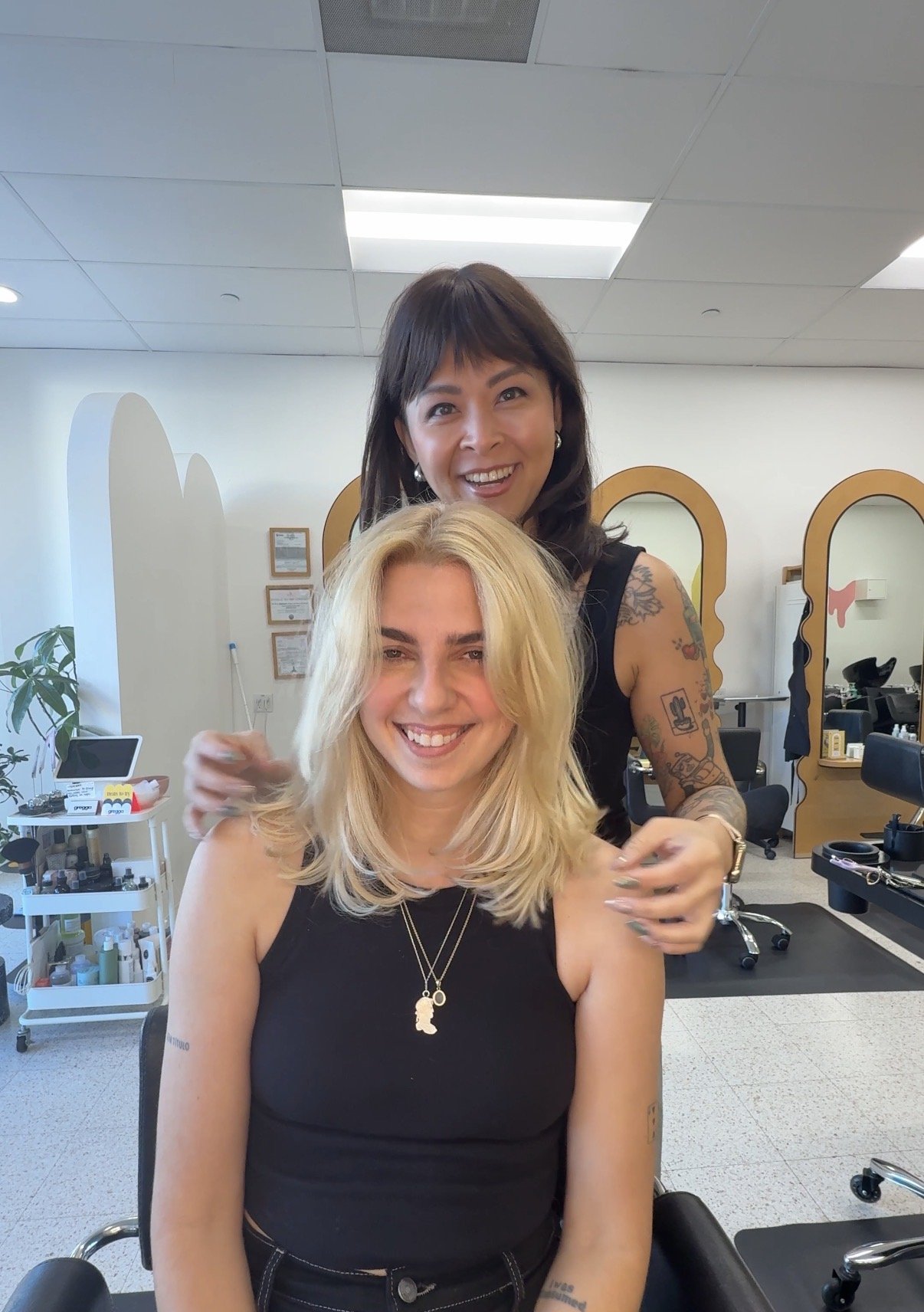 Hair tip: Make sure you’re evenly distributing your products. Apply your product first, then use a wide-tooth comb or a wet brush to gently comb it through from roots to ends. This helps ensure even coverage, better performance of the product, and smoother results before we start your service.